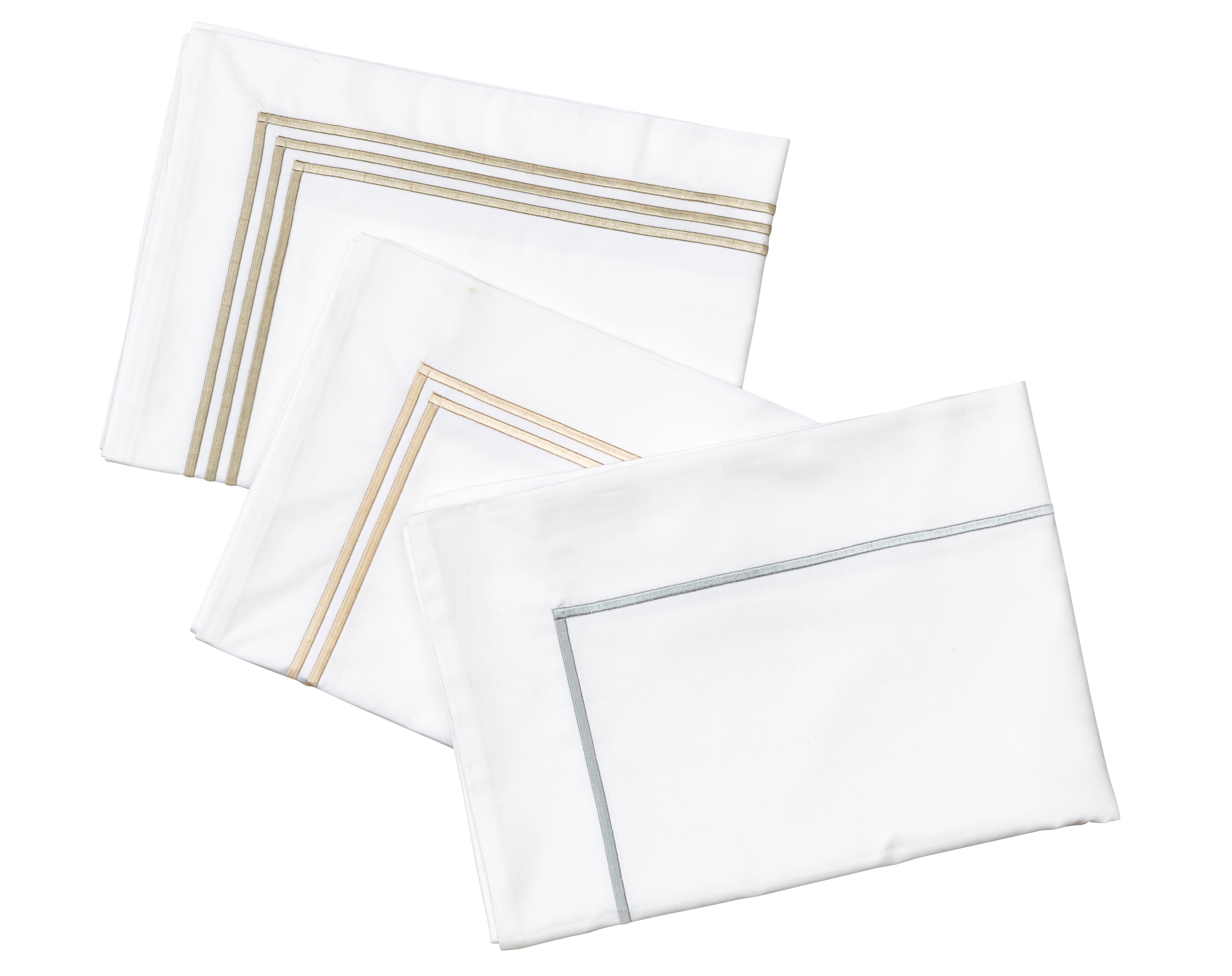 • Please be aware that many washing detergents now contain some form of bleach or ‘optical brighteners’. Over time, these will fade your sheeting, if you have chosen a colour other than white. On this basis, we would suggest a detergent with no brightening or bleaching agent for coloured sheeting or embroidered trims.