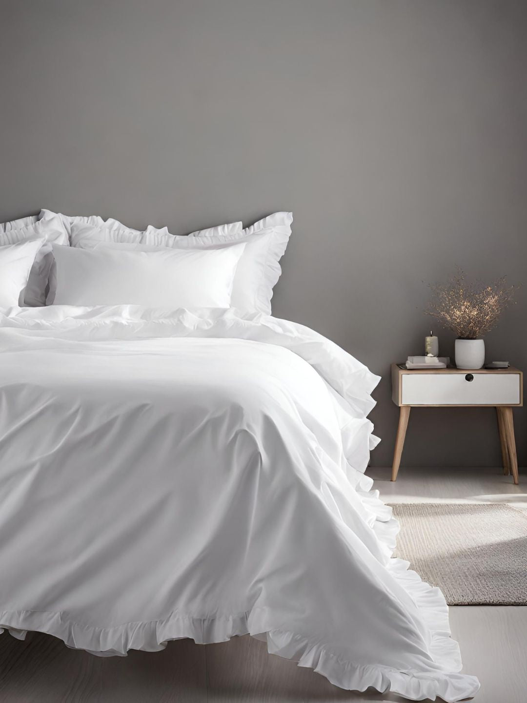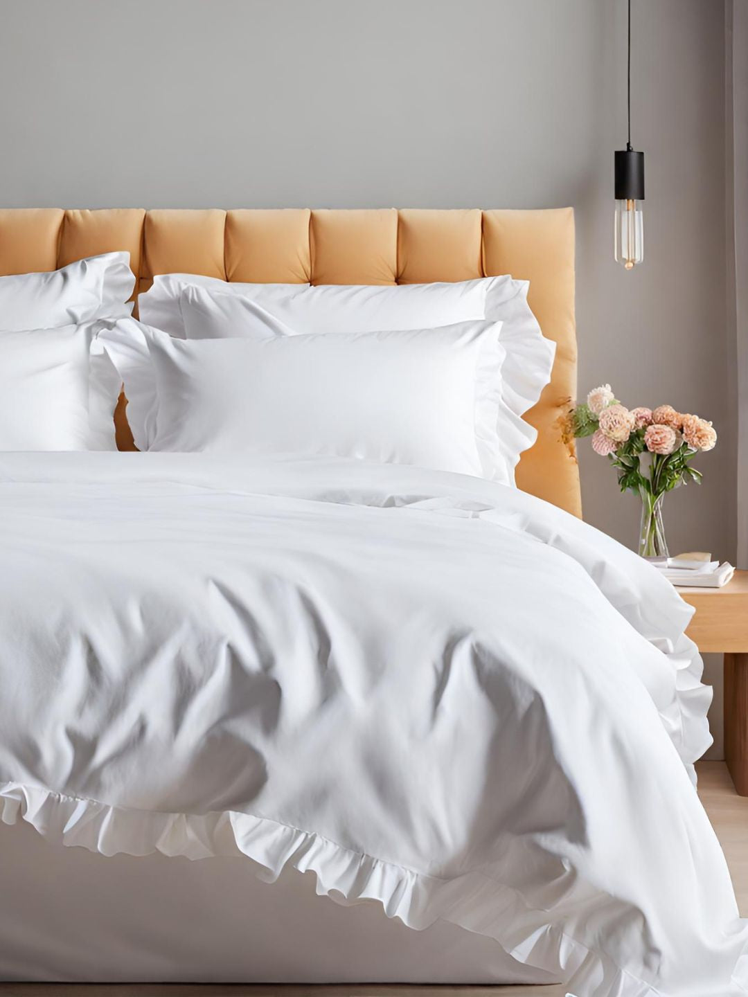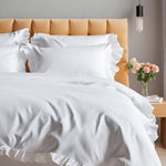 Our Nairn Ruffle duvet cover highlights graceful, flowing ruffles that create an elegant, refined feel to your bedroom. Expertly crafted in our bestselling 400TC cotton sateen, it balances style and ease to shape a calm, inviting space for sleep.